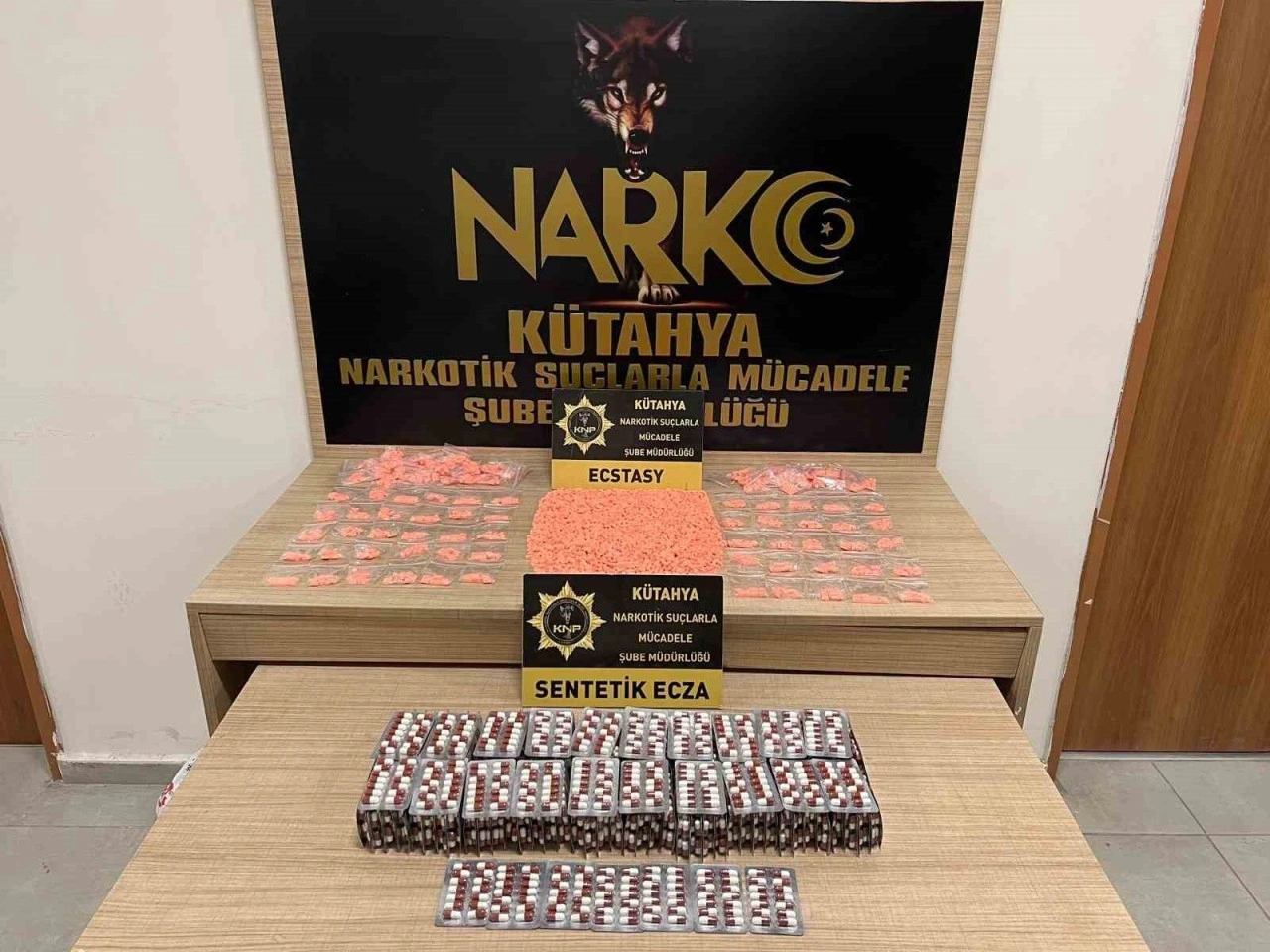 <div>Kütahya’da gerçekleştirilen uyuşturucu operasyonunda gözaltına alınan 5 şüpheliden 4’ü çıkarıldığı mahkemece tutuklandı.</div><div>İl Emniyet Müdürlüğü Narkotik Suçlarla Mücadele Şube Müdürlüğü ve KOM Şube Müdürlüğü ile yapılan müşterek çalışmalar çerçevesinde R.K., İ.E., S.K. Y.C.Z. ve R.K isimli şüphelilere ait 2 ev, 1 işyeri ve 1 araçta yapılan aramada, 5 bin adet ecstasy isimli hap ve 2 bin 618 adet sentetik ecza maddesi ele geçirildi.</div><div>Gözaltına alınan şüpheli şahıslardan R.K., İ.E., S.K. ve Y.C.Z. çıkarıldıkları mahkemece tutuklanırken, R.K isimli şahıs savcılıkça serbest bırakıldı.</div><div><b>Kaynak:</b> IHA</div>
