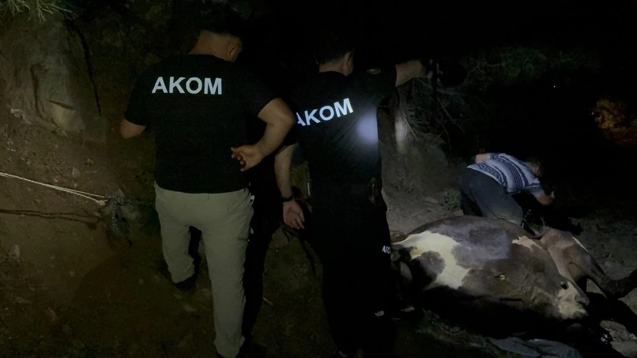 <div>Adana’nın Kozan ilçesinde 2 gündür kayıp olarak aranan inek, kuyuda bulundu, saatler süren çalışmayla kurtarıldı.</div> <div></div> <div>Olay, önceki gün Kozan ilçesine bağlı Karanebili Mahallesi Gerimsiz Sokak’ta meydana geldi. Merdan Karanfiloğlu’na ait inek, kuyuya düşerek ayağından yaralandı. 2 gündür aranan inek bulundu. Hayvanı kurtarmak için sahibi ve yöre sakinleri çalışma yaptı ancak başarılı olamadı. Haber verilmesi üzerine bölgeye Kozan Belediyesi Afet ve Acil Durum Koordinasyon Merkezi (AKOM) ve itfaiye ekipleri sevk edildi. Olay yerine gelen ekipler, ineği kurtarmak için köylülerle birlikte yoğun çaba harcadı. Mahallede iş makinesi bulunan İhsan Özkan, yol açma çalışmalarıyla ekiplere destek verdi. İnek yangın hortumlarıyla sarılarak bulunduğu noktadan çıkarıldı. Ayağında kırık olduğu tespit edilen ve saatlerce uğraşılarak kurtarılan inek sahibine teslim edildi.</div> <div></div> <div>Mahalle sakinlerinden Oğuzhan Özkan, iki gündür kayıp olarak aranan ineğin kuyuya düştüğünü ve yaralandığını belirtti. Özkan, iş makinesi operatörü olan babasının yol açma çalışmalarına katıldığını ve ekiplerin ortak çabasıyla ineğin kurtarıldığını söyledi.</div> <div></div> <div></div> <div><strong>Kaynak:</strong> IHA</div>