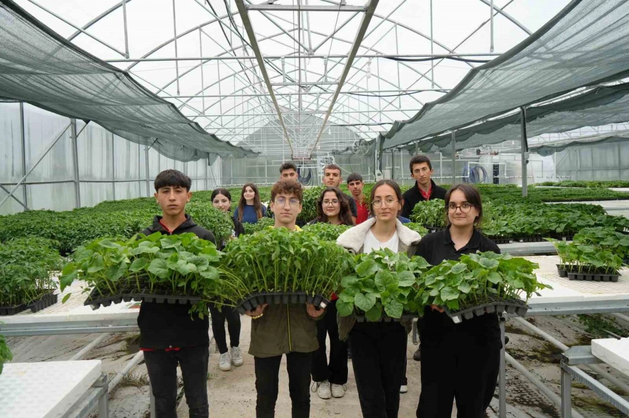 <div>Erzincan Gül Celal Toraman Mesleki ve Teknik Anadolu Lisesi Tarım Alanı Bölümü öğrencileri, uygulamalı derslerinde tohumdan yetiştirdikleri 200 bin fide üretimini 1 milyona çıkarmayı hedefliyor.</div><div>2024’te kurulan yaklaşık 850 metrekarelik serada eğitim gören öğrenciler, bu yıl domates, biber, salatalık gibi 12 tür, 39 çeşit 200 bin fide üretimi yaptı. Fideleri çiftçilere satan öğrenciler, üretimi 1 milyon adede çıkarmayı hedefliyor.</div><div>Üretimlerini 1 milyon fide hedefiyle sürdürdüklerini ifade eden Okul Müdürü Mustafa Karadaş, geçen yıl 50 bin fide ürettiklerini, bu yıl ise üretim kapasitelerini 4 kat artırdıklarını söyledi.</div><div>Öğretmen Yakup Alper ise fide, süs bitkileri ve fidan üretiminde okullarını öncü bir kuruluş haline getirmek istediklerini ifade etti.</div><div>Öğrencilerden Tuğba Bakartepe de tohum zamanından beri fidelerin bakımlarını yaptıklarından bahsederek, "Domates, biber ve birçok sebze çeşidimiz bulunmaktadır. Hem öğreniyoruz hem eğleniyoruz hem de üretime katkı sağlıyoruz. Gelecek tarımda." dedi.</div><div></div><div><b>Kaynak:</b> IHA</div>