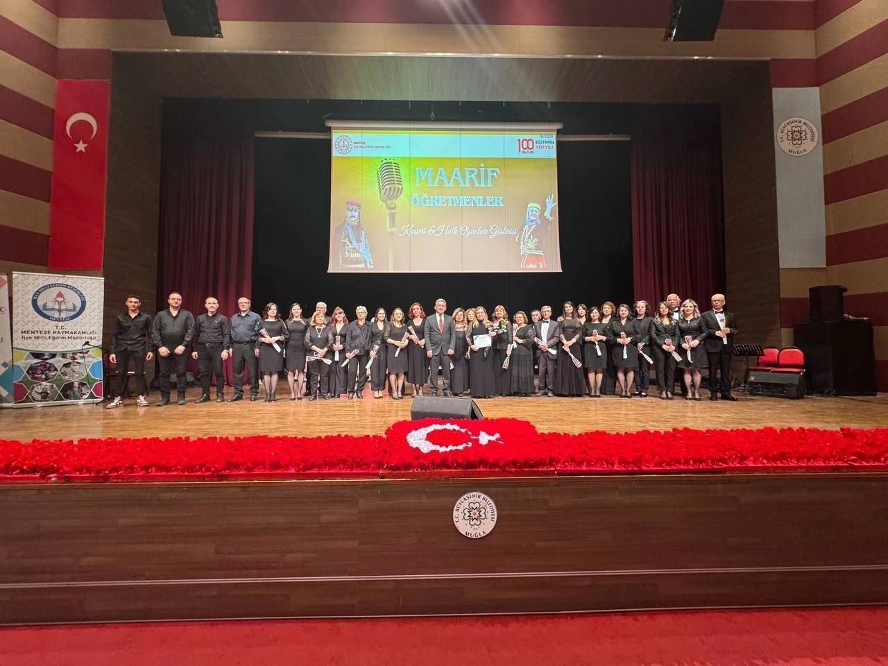 <div>Menteşe İlçe Milli Eğitim Müdürlüğü koordinesinde düzenlenen "Maarif öğretmenler konseri ve halk oyunları gösterisi" sanatseverlere unutulmaz bir gece yaşattı. Sanat ve kültürün iç içe geçtiği bu özel etkinlik, öğretmenlerin sahne performanslarıyla büyük beğeni topladı.</div><div>Gecede ilk olarak öğretmenlerden oluşan koro sahne aldı. Farklı yörelere ait eserleri başarıyla seslendiren öğretmenler, müzikseverlere adeta bir konser ziyafeti sundu. Duygusal ezgiler ve neşeli melodilerin harmanlandığı performans, izleyicilerden yoğun alkış aldı ve salonda duygulu anlar yaşattı. Etkinliğin bir diğer büyüleyici anı ise halk oyunları gösterisi oldu. Geleneksel kıyafetlerle sahneye çıkan öğretmenler, halk danslarıyla izleyenleri geçmişin kültürel zenginliklerine götürdü. Her bir figür ve adımda Anadolu’nun renkleri, ritmi ve ruhu sahnede yeniden hayat buldu. İzleyiciler, gösteri boyunca kültürel mirasımıza bir kez daha hayranlıkla tanıklık etti. Menteşe İlçe Milli Eğitim Müdürü İdris Kömürcü, etkinliğin sonunda yaptığı konuşmada, programa katkı sunan tüm öğretmenlere teşekkür ederek, "Bu güzel geceyle öğretmenlerimizin sadece sınıfta değil, kültür ve sanatta da ne denli özverili ve yetenekli olduklarını bir kez daha gördük. Eğitim camiamızın böylesine zengin bir ruha sahip olması bizleri gururlandırıyor" ifadelerini kullandı.</div><div></div><div><b>Kaynak:</b> IHA</div>