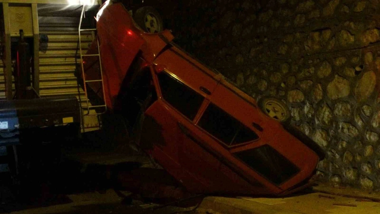 <div>Malatya’nın Battalgazi ilçesinde kontrolden çıkan bir otomobil, minibüsle çarpıştıktan sonra yaklaşık 5 metre yükseklikten aşağı uçtu. Kazada araç sürücüsü yaralandı.</div> <div></div> <div>Kaza, gece yarısı Battalgazi ilçesi Fırat Mahallesi Venüs Sokak üzerinde meydana geldi. Edinilen bilgilere göre bölgede seyir halinde olan 58 AFL 033 plakalı Fiat Tofaş marka otomobil, 34 JM 7497 plakalı minibüsle çarpıştı. Çarpışmanın etkisiyle sürücüsünün kontrolünü kaybettiği otomobil yaklaşık 5 metrelik yükseklikten aşağı uçarak. istinat duvarı ile park halindeki bir aracın dorsesi arasına sıkışarak askıda kaldı. İhbar edilmesi üzerine bölgeye polis, sağlık ve itfaiye ekipleri sevk edildi. Kazada yaralanan sürücüye olay yerinde ilk müdahale yapıldıktan sonra Battalgazi Devlet Hastanesi’ne kaldırıldı.</div> <div></div> <div>Kazayla ilgili inceleme başlatıldı.</div> <div></div> <div></div> <div><strong>Kaynak:</strong> IHA</div>