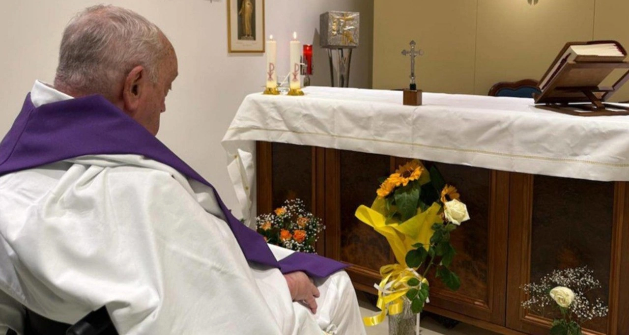 <div>Katoliklerin ruhani lideri 88 yaşındaki Papa Francis'in 14 Şubat'tan bu yana İtalya'nın başkenti Roma'daki Gemelli Hastanesi'nde tedavisi devam ediyor. Daha önce sevenlerine sesli mesaj yollayan Papa’nın bu kez Vatikan tarafından hastaneden ilk kez fotoğrafı yayınlandı. Fotoğrafta, Papa’nın hastanenin şapelinde olduğu görüldü.</div> <div><strong>Kaynak:</strong> IHA</div>