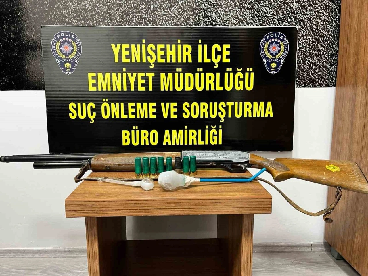 <div>Bursa Yenişehir Emniyet Müdürlüğüne bağlı ekiplerin yaptığı kontrollerde şüphe üzerine durdurulan bir araçta, uyuşturucu madde kullanımında kullanılan 2 adet payp, ruhsatsız av tüfeği ile 8 adet kapsül ele geçirildi.</div><div>İlçe Emniyet müdürlüğüne bağlı Suç Önleme ve Soruşturma Büro Amirliğine bağlı ekipler, Yenişehir’in değişik noktalarında düzenli olarak yapılan kontrollerde suçlulara göz açtırılmıyor. Son olarak şüphe üzerine durdurulan araçta uyuşturucu madde kullanımında kullanılan 2 adet payp, ruhsatsız av tüfeği ile 8 adet kapsül ele geçirilirken araçta bulunan 3 şüpheli gözaltına alındı. Şüphelilerin emniyetteki işlemleri sürüyor.</div><div><b>Kaynak:</b> IHA</div>