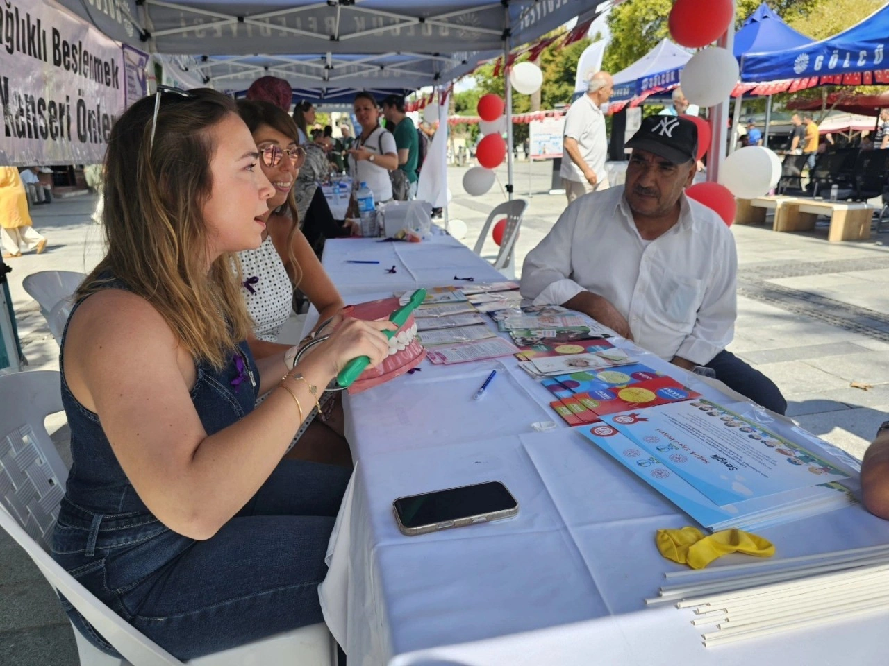 <div>Gölcük Belediyesi ve Gölcük İlçe Sağlık Müdürlüğü iş birliğiyle, 3-9 Eylül Halk Sağlığı Haftası etkinlikleri kapsamında Anıtpark’ta "Sağlık Sokağı" etkinliği düzenlendi.</div> <div></div> <div>Etkinliğe yoğun ilgi gösteren ziyaretçiler, kurulan stantlarda; sigara bırakma, kanser taraması ve diyetisyen desteği gibi konularda uzmanlardan bilgi aldı. Tansiyon ve şeker ölçümleri yaptırarak sağlık durumlarını kontrol etme imkanı bulan ziyaretçiler, ölçüm sonuçlarına göre uzmanlar tarafından ilgili sağlık birimlerine yönlendirildi.</div> <div></div> <div>Sağlık Sokağı’nda yer alan diğer stantlarda ayrıca organ bağışı, çocuk gelişimi ile ağız ve diş sağlığı gibi önemli alanlarda bilgilendirmeler yapıldı. Etkinlikte ayrıca sigarayı bırakan kişilere ise başarı belgeleri takdim edildi.</div> <div></div> <div>Etkinliğe; Vali İlhami Aktaş, Karamürsel Kaymakamı Kemal İnan, Kocaeli Büyükşehir Belediyesi Başkanvekili Berna Abiş, Gölcük Belediye Başkanı Ali Yıldırım Sezer ve Kocaeli İl Sağlık Müdürü Yüksel Pehlevan katıldı.</div> <div></div> <div></div> <div><strong>Kaynak:</strong> IHA</div>