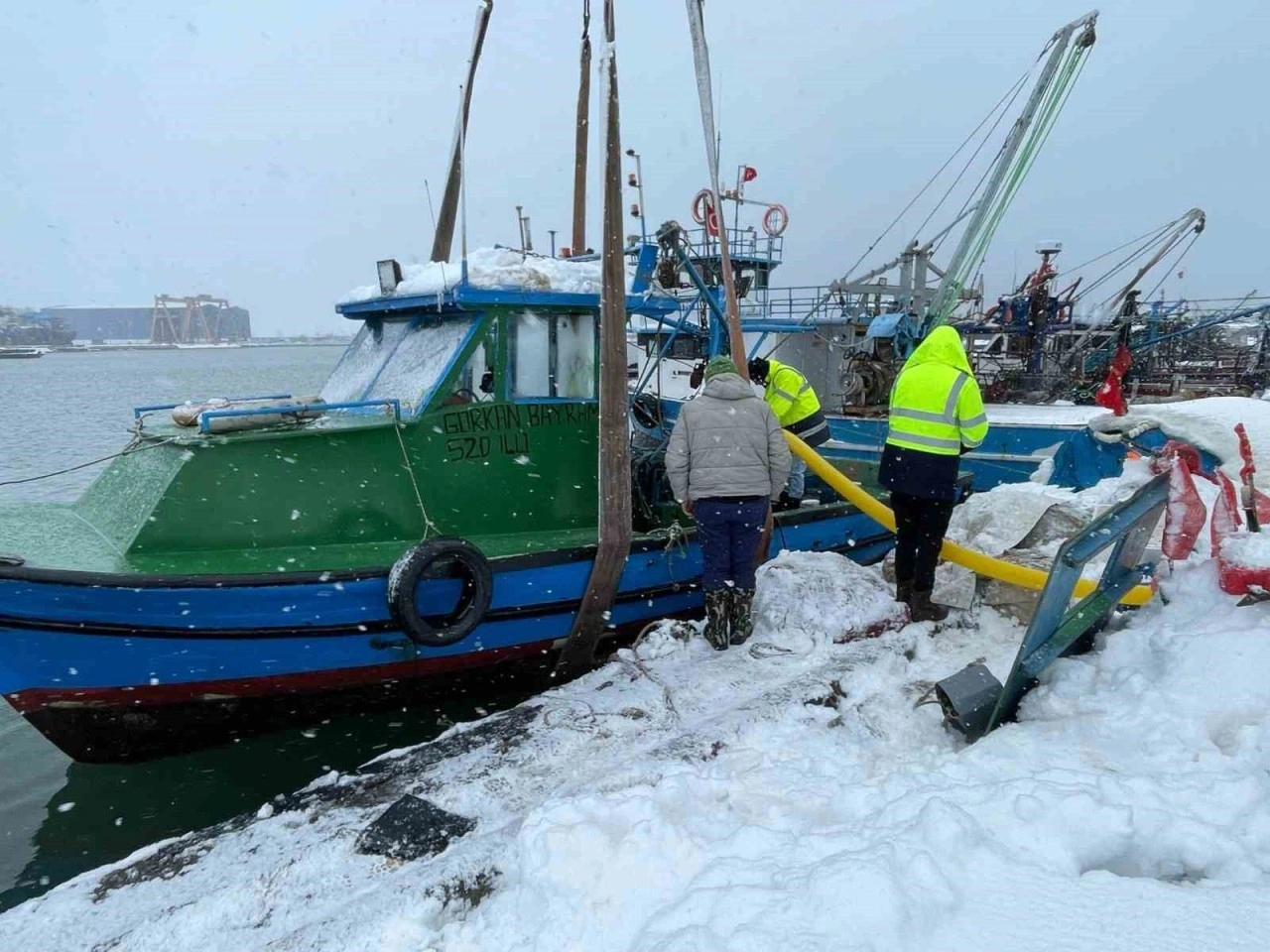 <div>Samsun’da şiddetli rüzgârdan etkilenen balıkçı teknesi limanda suya gömüldü.</div><div>Olay, Samsun’un Terme ilçesi liman sahası içerisinde gerçekleşti. Alınan bilgiye göre, limanda bağlı bulunan ‘Gürkan Bayram’ isimli balıkçı teknesi şiddetli rüzgârdan dolayı hasar görerek suya battı. Terme Arama Kurtarma Ekibi (TAKE) bünyesinde bulunan balık adamlarının ve Terme Belediyesi ekiplerinin müdahalesi sonucu, batan tekne vinç yardımıyla sudan çıkartıldı.</div><div></div><div><b>Kaynak:</b> IHA</div>