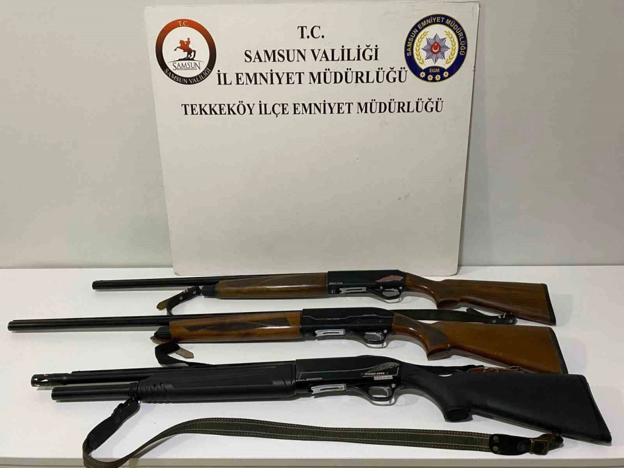 <div>Samsun’da tersane alanında 3 kişi, polis tarafından 3 adet ruhsatsız tüfekle yakalandı.</div><div>Edinilen bilgiye göre, Tekkeköy İlçe Emniyet Müdürlüğü ekipleri, Sanayi Mahallesi Liman Tersane Alanı’nda gerçekleştirilen kontrol sırasında 3 şahsı 3 adet ruhsatsız otomatik av tüfeği ile yakaladı. Olayla ilgili şüpheliler hakkında yasal işlem başlatıldı.</div><div><b>Kaynak:</b> IHA</div>