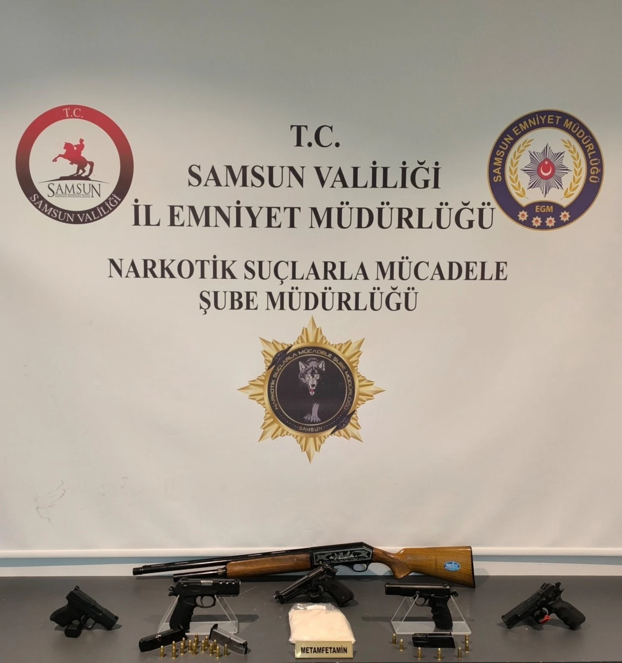 <div data-end="873" data-start="462">Samsun İl Emniyet Müdürlüğü Narkotik Suçlarla Mücadele Şube Müdürlüğü ekipleri, uyuşturucu ticareti yaptığı tespit edilen şüphelilere yönelik kapsamlı bir operasyon düzenledi. Takibe alınan iki şahısla bağlantılı olduğu belirlenen bir kişinin evine 7 Mart 2025 tarihinde yapılan baskında, 1 kilo 85 gram metamfetamin maddesi ele geçirildi. Gözaltına alınan şüpheli çıkarıldığı mahkemece tutuklandı.</div> <div data-end="1148" data-start="875">Soruşturmayı derinleştiren ekipler, 9 Ekim 2025’te Bafra ve 19 Mayıs ilçelerinde şüphelilere ait adreslerde aramalar gerçekleştirdi. Yapılan aramalarda 5 adet ruhsatsız tabanca, 143 adet tabanca fişeği, 1 adet ruhsatsız av tüfeği ile birlikte 4 hassas terazi ele geçirildi.</div> <div data-end="1269" data-start="1150">Gözaltına alınan 2 şüpheli hakkında adli işlem başlatılırken, olayla ilgili soruşturmanın çok yönlü sürdüğü bildirildi.</div> <div data-end="1269" data-start="1150"></div> <div data-end="1269" data-start="1150">KAYNAK: İHA</div>