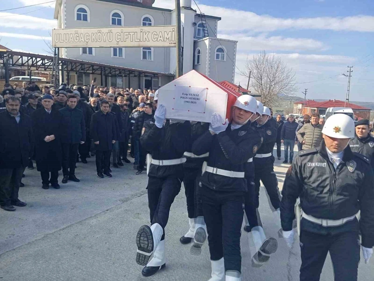 <div>Sinop’ta görev yaparken yakalandığı amansız hastalık nedeniyle 43 yaşında hayatını kaybeden Polis Memuru Eyüp Yılmaz, Samsun’un Bafra ilçesinde son yolculuğuna uğurlandı.</div><div>Bafra ilçesine bağlı Uluağaç Mahallesi Destanlar nüfusuna kayıtlı Sinop İl Emniyet Müdürlüğü personeli Eyüp Yılmaz (43), amansız hastalığa yenik düşerek tedavi gördüğü hastanede hayatını kaybetti. Evli ve 2 çocuk babası olan Eyüp Yılmaz için baba ocağındaki Çiftlik Camisi’nde tören düzenlendi. Yılmaz’ın cenazesi, helallik sonrası öğle namazını müteakip kılınan cenaze namazının ardından Uluağaç aile kabristanına defnedildi.</div><div>Cenaze törenine Bafra Kaymakamı Dr. Mustafa Altınpınar, Sinop İl Emniyet Müdür Yardımcısı Hasan Tahsin Çimen, Bafra İlçe Emniyet Müdürü Murat Öner, Bafra İlçe Jandarma Komutanı Binbaşı Gürcan Özdilek, yakınları ve çok sayıda vatandaş katıldı.</div><div></div><div><b>Kaynak:</b> IHA</div>