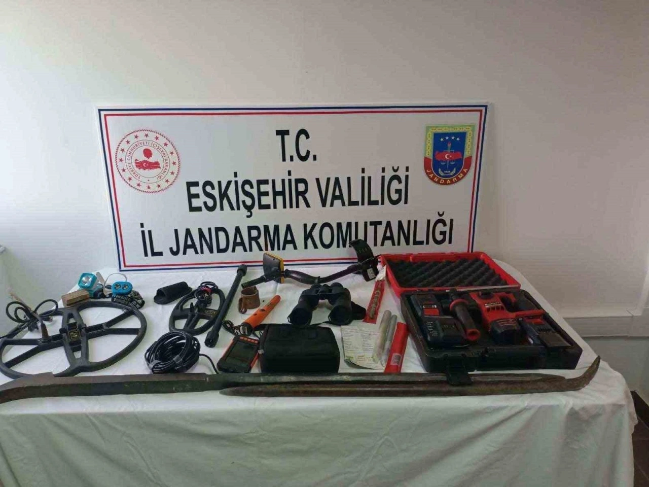 <div>Eskişehir’de kaçak kazı yapan 4 şüpheli jandarma ekipleri tarafından suçüstü yakalandı.</div><div>Sivrihisar ilçesinde şüpheli şahısların kaçak kazı yaptığı bilgisi üzerine Eskişehir İl Jandarma Komutanlığına bağlı birimlerince çalışma başlatıldı. Yapılan çalışmalar neticesinde Sivrihisar ilçesi Karakaya mevkiinde 4 şüpheli şahıs kaçak kazı yaparken suçüstü yakalandı. Kazı alanında 1 adet matkap, 2 adet el dedektörü, 1 adet yılan kamera, 1 adet el dürbünü, 9 adet muhtelif kazı malzemesi maktap ucu, levye ve 2 adet tarihi eser olduğu değerlendirilen obje ele geçirildi.</div><div>Şüpheli şahıslar hakkında "2863 Sayılı Kültür ve Tabiat Varlığı Koruma Kanuna Muhalefet" suçundan soruşturma başlatıldı.</div><div><b>Kaynak:</b> IHA</div>