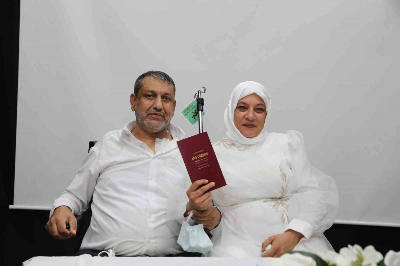 <div>Bursa Ali Osman Sönmez Onkoloji Hastanesinde tedavi gören 49 yaşındaki kanser hastası Yaşar Ünsever, yakın zamanda tanıştığı 45 yaşındaki Hatice Sağılır ile hastanede evlendi.</div> <div></div> <div>Yaklaşık 6 aydır kemik kanseri tedavisi gören ve hastalık nedeniyle belden aşağısı felç olan Yaşar Ünsever, yakınları vasıtasıyla İzmir’de yaşayan Hatice Sağılır ile tanıştı. Kısa sürede muhabbetleri ilerleyen ikili, hayatlarını birleştirmeye karar verdi. Ünsever’in tedavisi devam ettiği için hastane yönetimi duyarlı hareket ederek konferans salonunda uygun ortamı hazırladı. Ünsever ve Sağılır çifti, nikah şahitliğini Bursa Vali Yardımcısı Mustafa Güney, İl Sağlık Müdürü Uzm. Dr. Mustafa Çetin ile Aile ve Sosyal Hizmetler İl Müdürü Faruk Uysal’ın yaptığı törenle dünya evine girdiler.</div> <div></div> <div>Tören sonunda duygularını aktaran Yaşar Ünsever, "Telefon aracılığıyla tesadüfen tanıştık. Halamın kızı, onun arkadaşı oluyor. Ben halamın kızı ile konuşurken onun sesini duydum. Evli mi, bekar mı? Diye sordum. Bekar dediler. İlk tanışmamız o şekilde oldu. Daha sonra İzmir’e ziyaretine gittim" şeklinde konuştu.</div> <div></div> <div>"Belden aşağımı hiç hissetmiyorum"</div> <div></div> <div>Kemik kanseri tedavisi gördüğünü belirten Ünsever, "Omuriliğimde olduğu için sinire baskı yapıyor ve yürüyemiyorum. Yaklaşık iki buçuk ay oldu. Belden aşağımı hiç hissetmiyorum. Yüksek İhtisas’ta teşhis aldım. Belim ağrıyor diye gittim ilk ameliyatımı orada oldum. Çimentolama yaptılar. Tekrar çıktı ve burada ikinci kez ameliyat oldum. Platin taktılar. Kemoterapi görüyordum. Üçüncüye tekrardan çıktı. Sinire baskı yapınca belden aşağımı hissetmemeye başladım" dedi.</div> <div></div> <div>Hastane odasında nikâh yapılacağını beklerken büyük bir organizasyon ile karşılaştıklarını dile getiren Hatice Sağılır ise, "Buraya gelince şaşırdık. Beklemiyorduk. Vesile olan herkesten Allah razı olsun. Bizim için çok güzel oldu" ifadelerini kullandı.</div> <div></div> <div></div> <div><strong>Kaynak:</strong> IHA</div>
