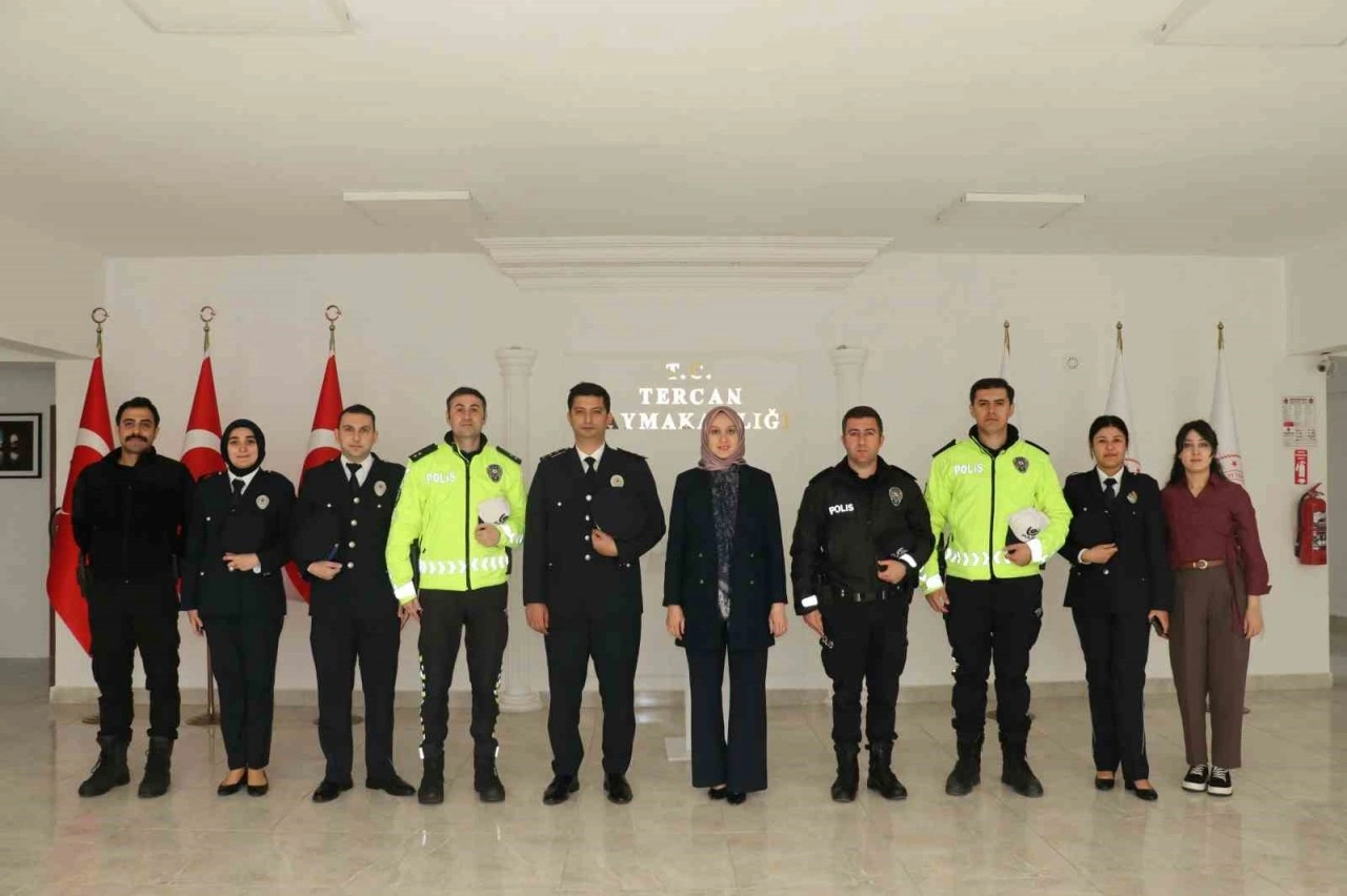 <div>Erzincan’ın Tercan ilçesinde Türk Polis Teşkilatının 180. kuruluş yıl dönümü ve Polis Haftası münasebetiyle İlçe Emniyet Müdürlüğü personeli tarafından Kaymakamlık bahçesinde bulunan Atatürk anıtına çelenk bırakma töreni düzenlendi. İlçe Emniyet Müdürlüğü personeli Kaymakam Neslihan Kısa Duman’ı makamında ziyaret ettiler.</div><div>Ziyaretten duyduğu memnuniyeti belirten Kaymakam Neslihan Kısa Duman, Türk Polis Teşkilatının 180. kuruluş yıldönümünü kutlayarak, "Aziz milletimizin huzur ve güvenliği için görevi başında olan emniyet teşkilatımızın tüm mensuplarına başarılar diliyor, Aziz Vatanımızın bütünlüğünü ve huzurunu, milletimizin bağımsızlığını temin yolunda görev ifa ederken şehadet mertebesine ulaşan polislerimizi rahmet, gazilerimizi minnetle anıyorum." dedi.</div><div></div><div><b>Kaynak:</b> IHA</div>