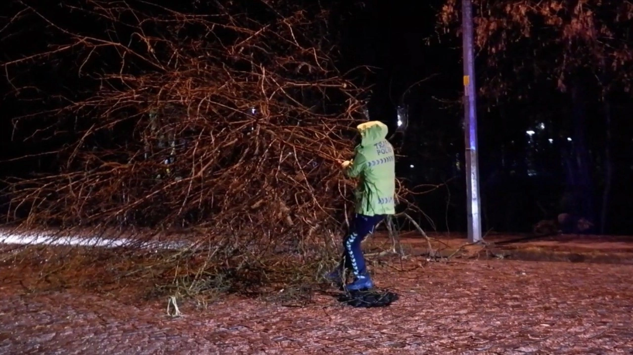 <div>Edirne’de sağanak yağış sonrası yola devrilen ağacı kaldırmak için trafik polisleri seferber oldu.</div><div>Edirne’nin Karağaç Mahallesi Lozan Caddesi üzerinde bulunan Kent Ormanı’ndaki bir ağaç devrilerek yola düştü. O esnada yoldan geçen araç ve yaya bulunmaması nedeniyle kaza ve yaralanma yaşanmaması yüreklere su serpti. İhbar üzerine olay yerine polis ve belediye ekipleri gönderildi.</div><div>Kısa sürede olay yerine ulaşan polis ekipleri çevre güvenliği alırken bir diğer yandan da ağacı kaldırmak için seferber oldu. Belediye ekipleri de, motorlu testere yardımı ile ağacı keserek kamyona yükledi. Temizlik çalışmalarının ardından yol trafiğe açıldı.</div><div>Edirneli vatandaşlardan Nevzat Ablak, polislerin olay yerine gelerek yolu trafiğe açtığını belirtti.</div><div></div><div><b>Kaynak:</b> IHA</div>