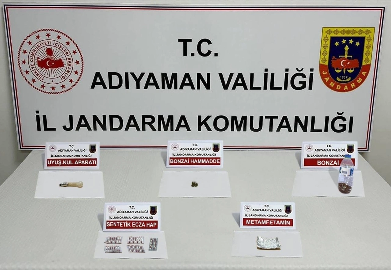 <div>Adıyaman’da jandarma ekiplerince yapılan uyuşturucu denetimlerinde 28 şahsa işlem yapıldı.</div> <div></div> <div>Edinilen bilgilere göre, İl Jandarma Komutanlığı ekiplerince kent genelinde yapılan uyuşturucu denetimlerinde 66 adet sentetik hap, 24 gram bonzai, 7 gram metamfetamin, 2 gram bonzai ve 1 adet uyuşturucu kullanma aparatı ele geçirildi. Uyuşturucu maddeler muhafaza altına alınırken 28 şahıs ise gözaltına alınarak jandarma komutanlığına götürüldü.</div> <div></div> <div>Konuyla ilgili soruşturma başlatıldı.</div> <div></div> <div><strong>Kaynak:</strong> IHA</div>