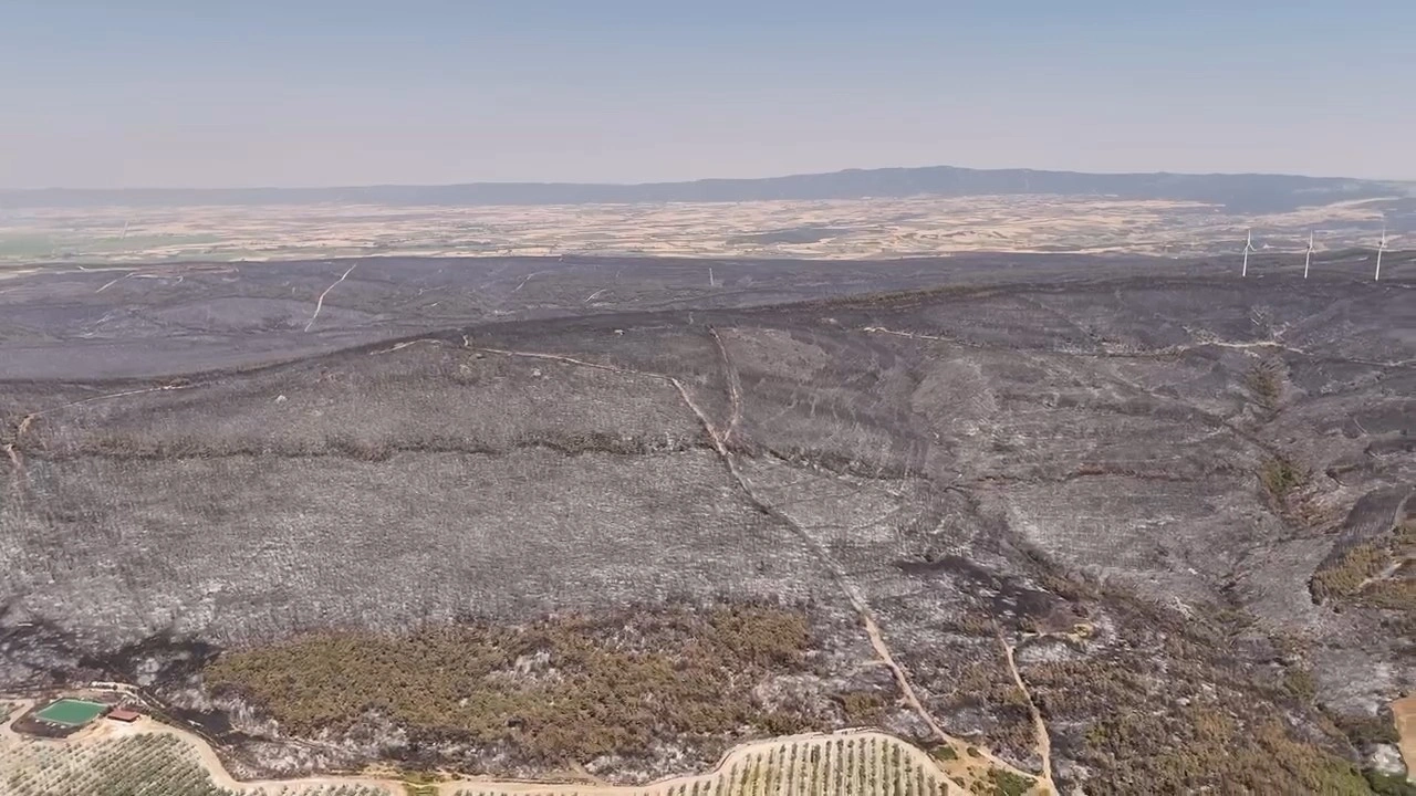 <div>Tekirdağ’ın Şarköy ilçesinde 15 Temmuz Salı günü tarım arazisinde başlayarak ormanlık alana sıçrayan yangın, ekiplerin yoğun ve kesintisiz müdahalesi sonucu kontrol altına alındı. Rüzgarın etkisiyle geniş bir alana yayılan yangın nedeniyle çok sayıda ormanlık ve tarım arazisi zarar gördü. Yangının ardından bölgedeki tahribatın boyutu dron ile görüntülendi.</div> <div></div> <div>Ortaya çıkan görüntüler, yangının yol açtığı yıkımı gözler önüne sererken; adeta küle dönen ağaçlar ve siyaha bürünmüş araziler yaşanan felaketin ciddiyetini ortaya koydu. Yangına müdahale eden ekipler, söndürme çalışmalarının ardından soğutma çalışmalarına devam ederken, yanan alanların tekrar yeşillendirilmesi için uzun vadeli çalışmaların yapılması bekleniyor.</div> <div></div> <div></div> <div><strong>Kaynak:</strong> IHA</div>