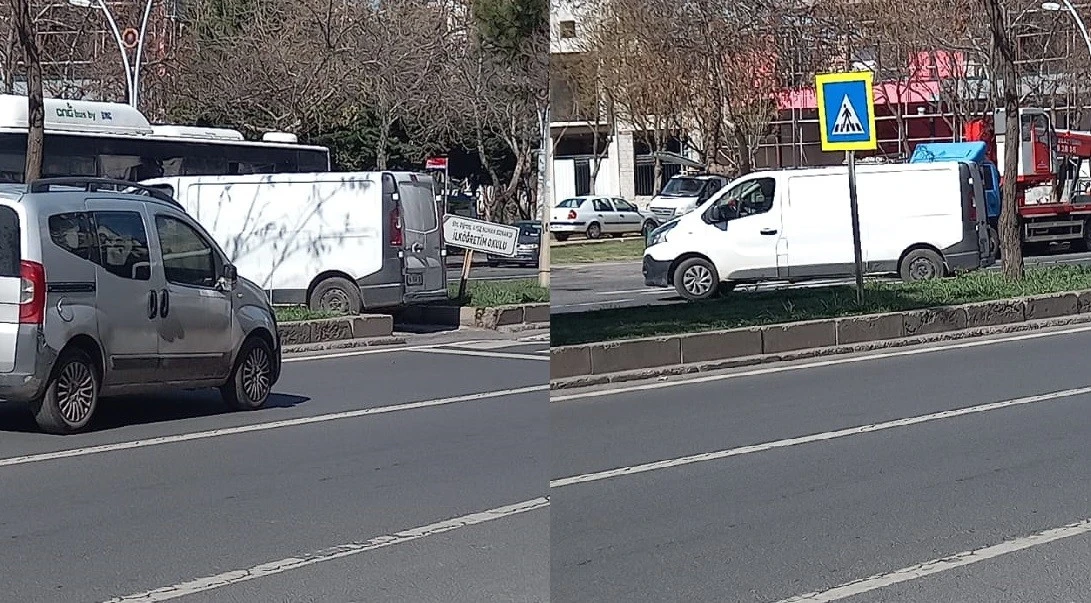<div>Diyarbakır’ın Kayapınar ilçesi Diclekent cami önünde bir sürücü, trafik kurallarını adeta yok sayarak tehlikeli bir manevraya imza attı. Diclekent Bulvarı’nda bir panelvan minibüs sürücüsü, yayalara ayrılan yolu kullanarak karşıya geçti. </div> <div>Olay, çevrede bulunan vatandaşların şaşkın bakışları arasında gerçekleşti. Kuralları ihlal eden sürücünün bu tehlikeli hareketi, o anlara tanık olanlar tarafından fotoğraflandı. Görüntülerde, minibüsün yaya yolunu adeta kendine şerit yaparak geçiş yaptığı net bir şekilde görülüyor. </div> <div>Trafik güvenliğini hiçe sayan bu durum, vatandaşlar tarafından büyük tepki çekerken, trafik kurallarına uyulmamasının büyük riskler doğurduğunu belirten uzmanlar, bu tür ihlallerin kazalara davetiye çıkardığını vurguladılar.</div> <div></div>
