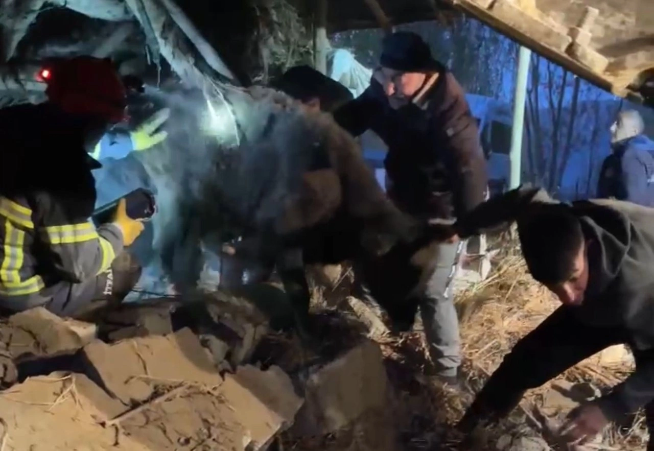 <div>Hakkari’nin Yüksekova ilçesinde gece saatlerinde bir ahırın çökmesiyle köylüler ve itfaiye ekipleri yaralı hayvanları kurtarmak için seferber oldu.</div><div>Edinilen bilgiye göre olay, Yüksekova ilçesine bağlı Köprücük köyünde ikamet eden Tekin Açıkel’in ahırında meydana geldi. Saat 03.40 sıralarında henüz belirlenemeyen bir nedenle ahırın çatısı çöktü. Bu sırada içeride bulunan 10 büyükbaş ve küçükbaş hayvan enkaz altında kaldı. Çökme sesini duyan köy sakinleri hızla olay yerine koşarak enkaz altındaki hayvanları kurtarmaya çalıştı. Köylüler, kendi imkanlarıyla bazı hayvanları dışarı çıkarırken, ihbar üzerine olay yerine sevk edilen itfaiye ekipleri de kalan hayvanları kurtarıp güvenli bir alana taşıdı.</div><div>Bazı hayvanların yaralandığı bildirildi.</div><div></div><div><b>Kaynak:</b> IHA</div>