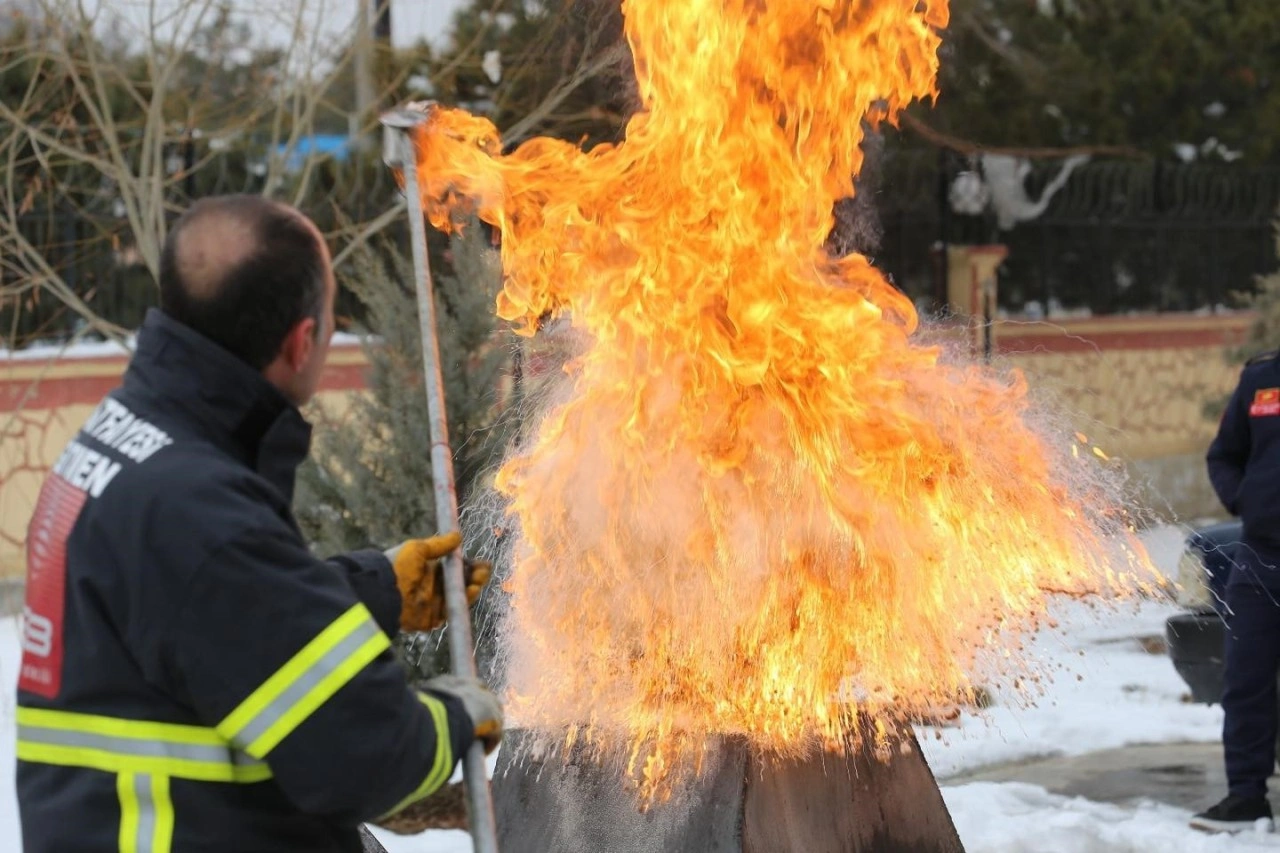 İtfaiye eğitim amirliği tarafından hazırlanan, yanma ve yangın bilgisi, yangın söndürme maddeleri ve yöntemleri, yangından korunma tedbirleri ile ilgili olarak teorik yangın eğitimi sunumuyla, yangın güvenliği, risk değerlendirmesi ve müdahale stratejileri hakkında detaylı bilgiler verildi.