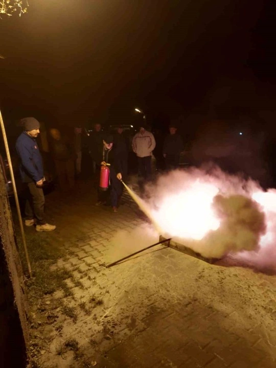 Tatbikat kapsamında, Zonguldak İl Afet ve Acil Durum Müdürlüğü ekipleri gözetiminde açık alanda kontrollü olarak yakılan ateş, yangın tüpü kullanılarak söndürüldü. Gerçeğini aratmayan tatbikat, site sakinleri tarafından büyük bir ilgiyle takip edildi.