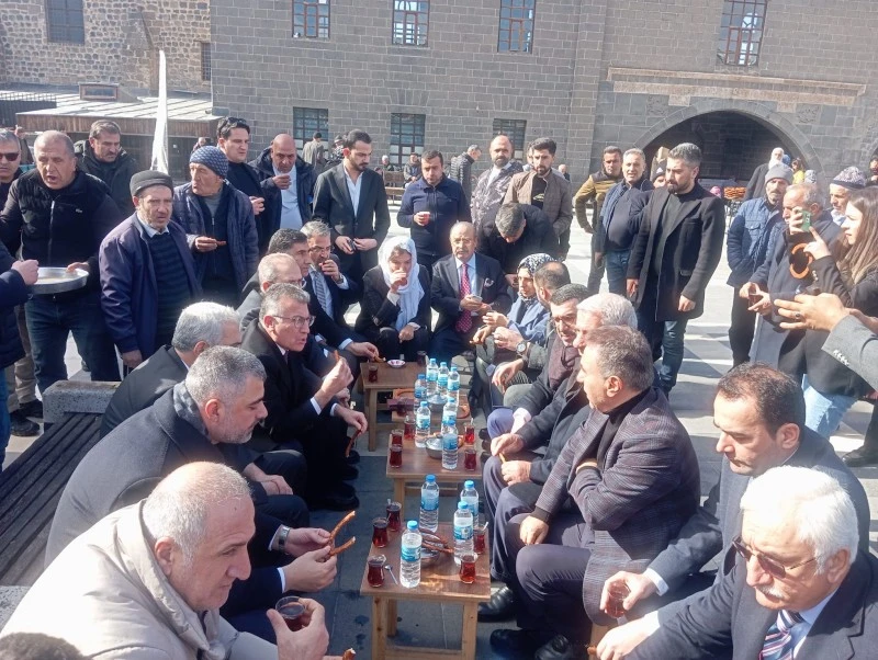 Ulu Cami ziyaretinin ardından heyet, cami önünde bulunan çay evinde vatandaşlarla bir araya geldi. Buluşmaya AK Parti TBMM Grup Başkan Vekili Abdullah Güler, AK Parti Diyarbakır Milletvekilleri Mehmet Sait Yaz ve Suna Kepolu Ataman ile AK Parti Diyarbakır eski Milletvekili Ebubekir Bal katıldı.