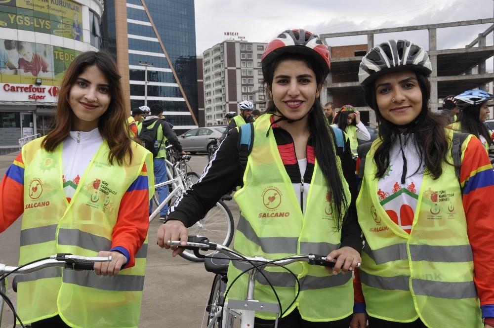 Diyarbakır’da Dünya Sağlık Günü nedeniyle bir araya gelen bisiklet tutkunları farkındalık oluşturmak amacıyla pedal çevirdi.