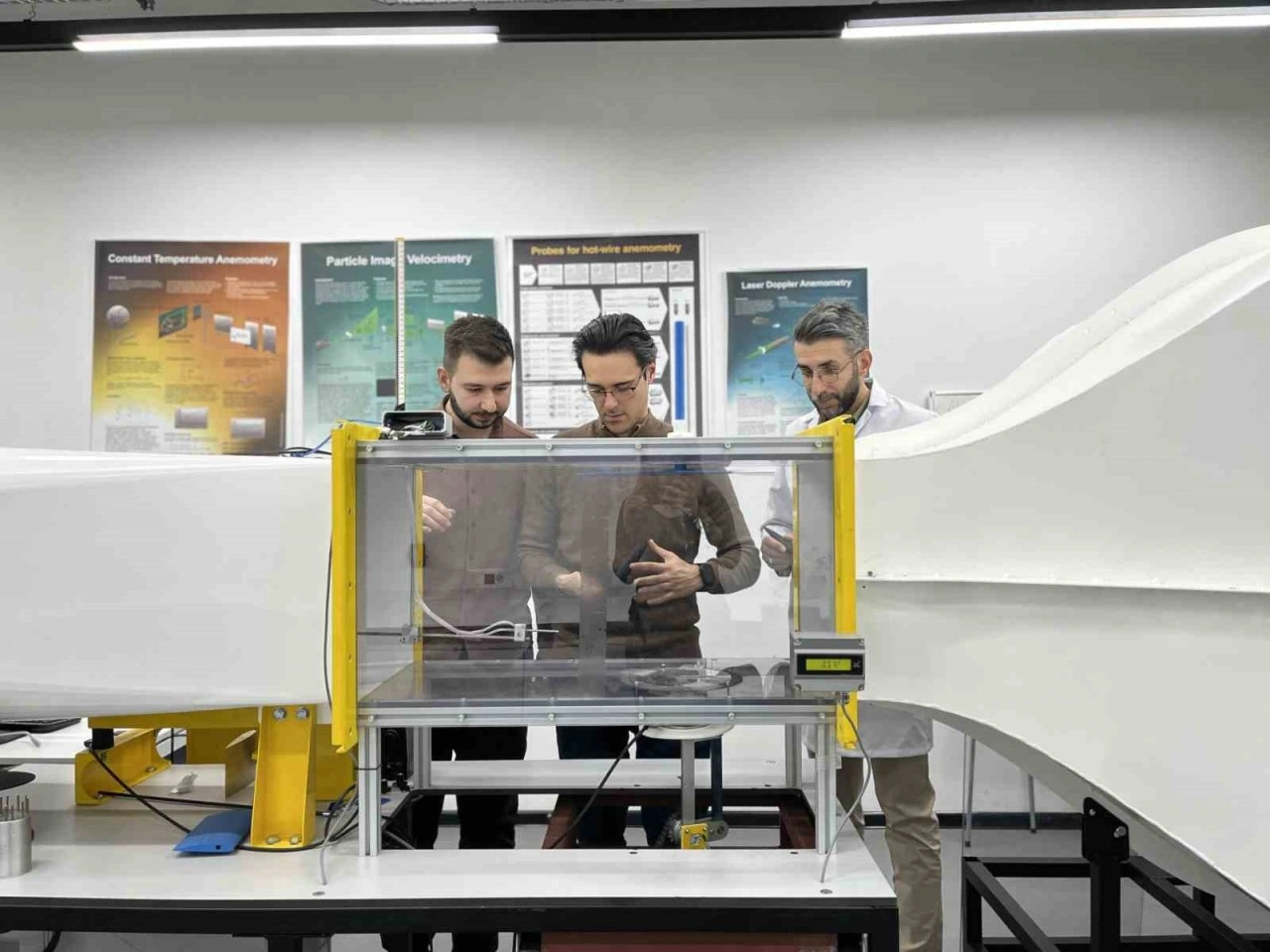 SBTÜ Uçak Mühendisliği Bölüm Başkanı Dr. Öğretim Üyesi Yunus Çelik, öğrencilerin uygulamalı olarak rüzgâr tünellerini kullanarak bilgi birikimlerini artırdığını belirterek, "Burada ses altı rüzgâr tünelini, uçakların ve rüzgâr türbinlerinin kanat profillerinin aerodinamik analizlerini yapmak için kullanıyoruz. Saniyede yaklaşık 30 metre hızında bir rüzgâr akışımız ve 40 santimetre genişliğinde bir test alanımız mevcut. Rüzgâr tünelini akademik çalışmalarımızda, öğrencilerimizin eğitim faaliyetlerinde ve üniversitemizde devam eden deneyim stajı etkinliklerinde aktif olarak kullanıyoruz. Amacımız, öğrencilerimizin dört yıllık eğitim süreci sonunda savunma sanayii kurumlarında çalışabilmelerini sağlayacak teorik ve deneysel bilgi birikimi kazanmalarıdır. Bilgisayar destekli analiz programlarıyla kanat profillerinin aerodinamik analizlerini gerçekleştiriyoruz. Daha sonra öğrencilerimiz, aynı şartlar altında bu profillerin deneysel analizlerini yaparak teorik bilgilerini pekiştiriyor. Bu sayede rüzgâr tünelini uygulamalı olarak kullanarak bilgi birikimlerini artırıyorlar" dedi.