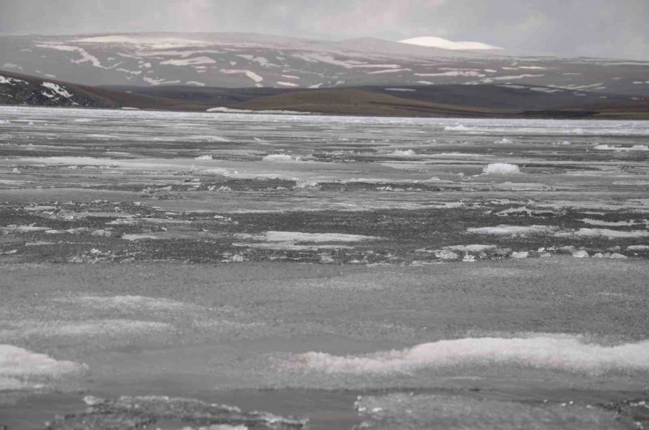 Kars’ın Susuz ilçesinde bin 942 rakımda bulunan ve bir volkanik set gölü olan denizden 2 bin 300 metre yükseklikte bulunan Aygır Gölü görenleri büyülerken, gölün buzlarının erimeye başlamasıyla balıkçılarda hazırlıklarını yapmaya başladı.