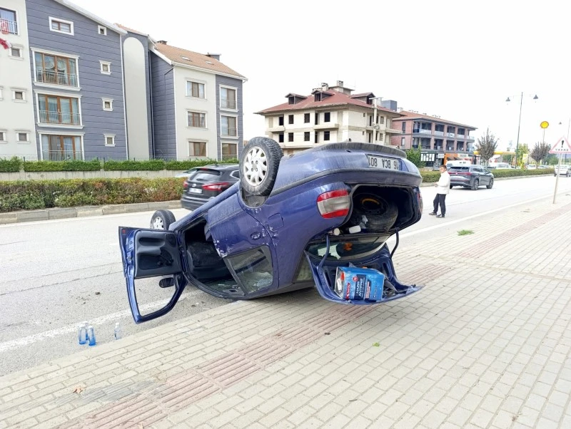 Bursa'nın İnegöl ilçesinde meydana gelen trafik kazasında 19 yaşındaki sürücünün kullandığı otomobil kontrolden çıkarak takla attı. Ters dönen araçtan kendi çabasıyla çıkan genç sürücü, hastaneye kaldırıldı. Kaza anı ise çevredeki bir sitenin güvenlik kamerası tarafından kaydedildi.