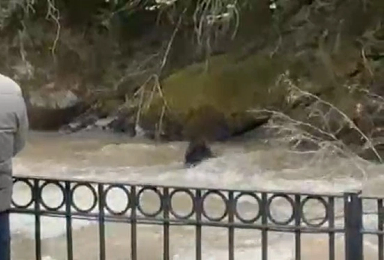 Rize’nin Çamlıhemşin ilçesinde yetişkin domuz dere kıyısında gezerken vatandaşlar tarafından fark edildi. Cep telefonlarıyla vatandaşların kaydetmeye çalıştığı domuz, kayanın üzerinden ayağı kayarak Fırtına Deresi’ne düştü. Bahar mevsiminin gelmesiyle Kaçkar Dağları’nda eriyen karlar nedeniyle debisi yüksek dereden çıkmaya çalışan domuz bir süre akıntıyla mücadele etti. Kayanın üzerine çıkma çabaları sonuç vermeyen domuz yeniden dereye düşerek biraz daha sürüklendi. O esnada vatandaşlar ise bağırarak domuza yol göstermeye çalıştı. Derenin kenarında akıntısız bir yere sığınabilen domuz sonrasında kıyıya çıkarak gözlerden kayboldu.