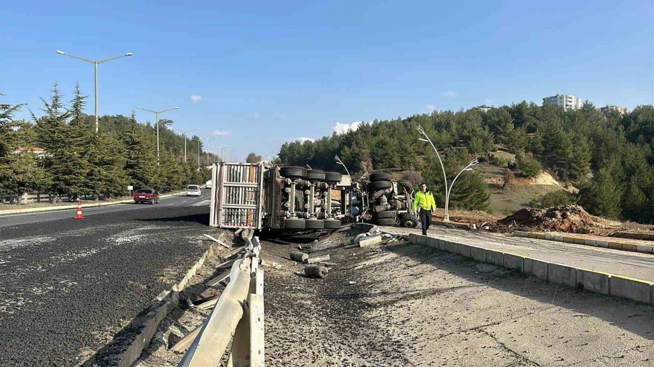 Uşak’ta meydana gelen kazada kontrolden çıkan kömür yüklü tır devrildi, sürücüsü ise yaralandı.