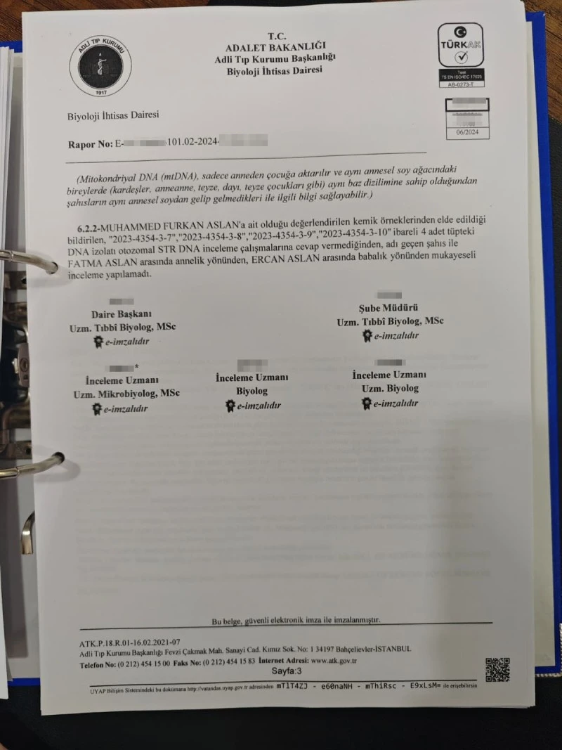 Olayın bir başka boyutu ise defin kayıtlarında ortaya çıktı. Baba Ercan Aslan, Yeniköy Mezarlıklar Müdürlüğü’nden gelen yazıda, “defin kaydının bulunmadığını” öğrendiklerini belirterek, “Bize kutu içinde teslim ettikleri cenazeyi defin için mezarlığa götürdük. Ancak resmi kayıtta hiçbir iz yok. Bu da işin ne kadar karışık olduğunu gösteriyor” dedi.