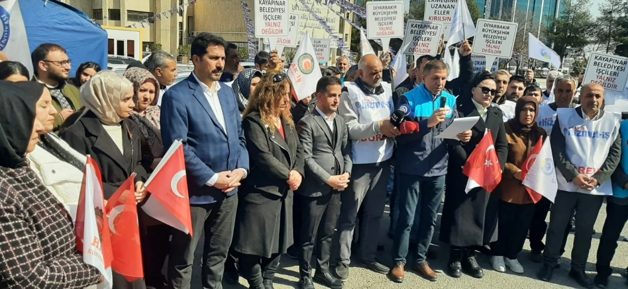 Emekçilerin yaşadığı mağduriyetlere dikkat çeken Memur-Sen Diyarbakır İl Başkanı Ramazan Tekdemir, “Dem Parti barış söyleminde samimiyse, öncelikle emekçi kıyımına son versin ve mağduriyetleri giderilsin” diyerek belediyelerin uygulamalarını eleştirdi. Ayrıca, Cumhur İttifakı'nın “Terörsüz Türkiye” hedefine tam destek verdiklerini belirtti.