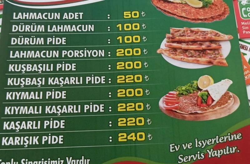 Lahmacun 50 TL, meze ve çay ikram