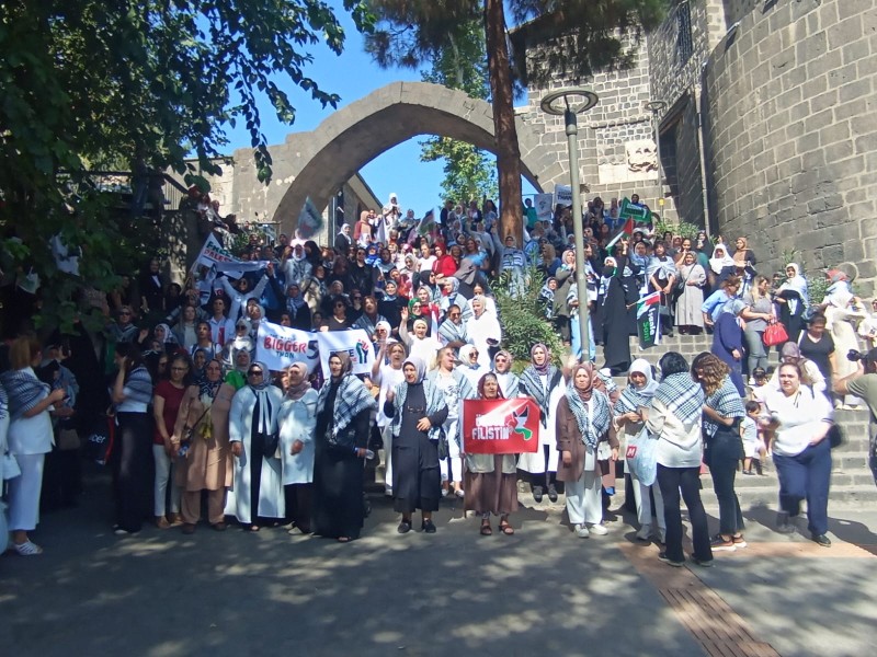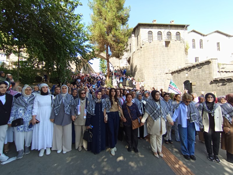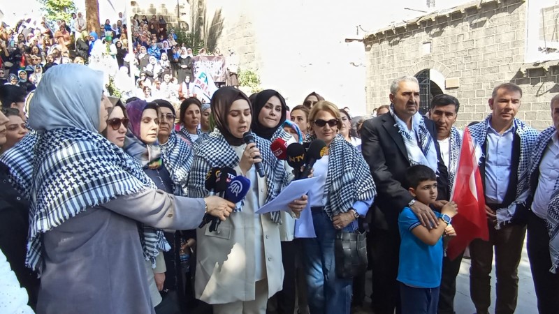 Diyarbakır – Gazze’de yaşanan insani kriz ve dramı dünya kamuoyuna duyurmak amacıyla AK Parti Kadın Kolları tarafından Türkiye’nin 81 ilinde eş zamanlı düzenlenen basın açıklamalarından biri de Diyarbakır’da yapıldı. Sur ilçesindeki tarihi Hz. Süleyman Camii avlusunda gerçekleşen etkinlikte, Gazze’ye destek mesajları verildi.