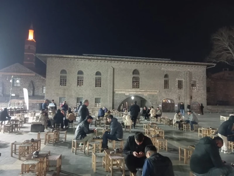 Diyarbakır Ulu Camii ve Hasanpaşa Hanı başta olmak üzere kentin tarihi ve dini kimliğiyle öne çıkan mekanları iftar sonrası ziyaretçi akınına uğruyor.Ulu Camii’de teravih namazı sonrası yoğunluk yaşanırken, Hasanpaşa Hanı’nda ise vatandaşlar çay içerek ve sohbet ederek Ramazan akşamlarını değerlendiriyor. Tarihi mekanların ışıklandırılmış görüntüsü ise ziyaretçilere görsel bir şölen sunuyor.