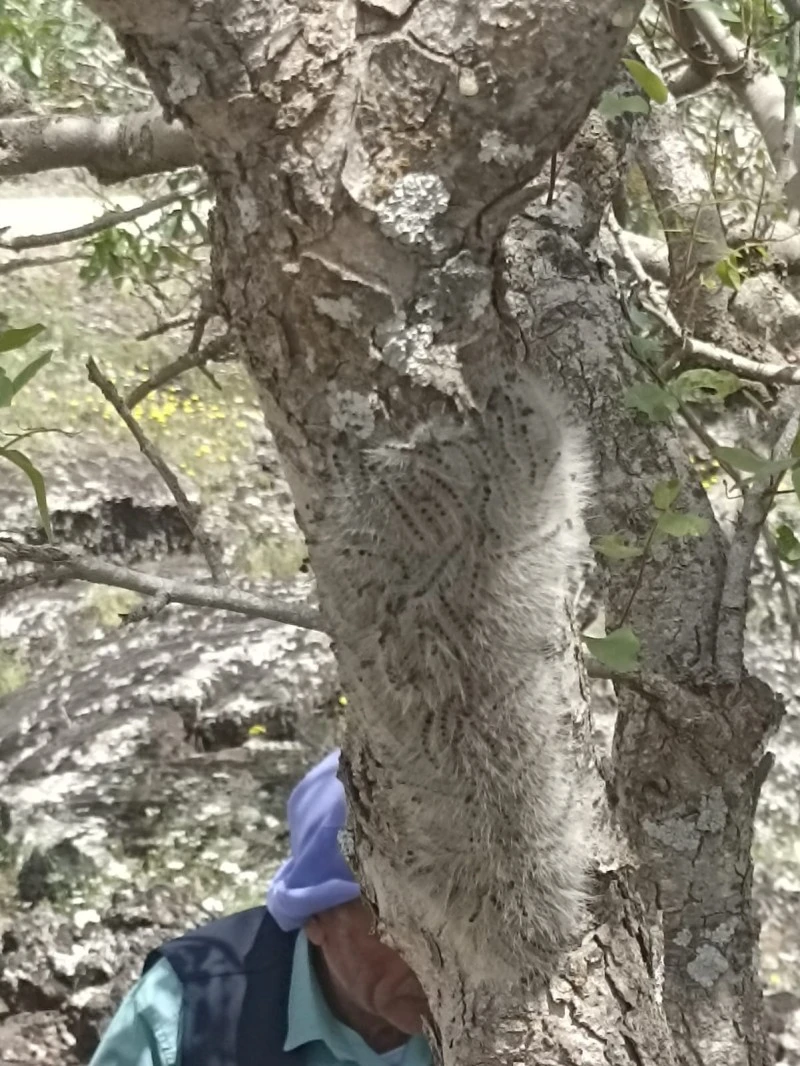 “Bunlar istilacı, bir nevi ağaç kurdu gibi davranıyor. Şu an yaklaşık 10 bin dönüm ormanlık alandan söz ediyoruz. Bu alanın büyük bir kısmını menengiç, fıstık, palamut ve daha birçok ağaç türü oluşturuyor. Bu tırtıllar ağaçların yapraklarını yiyerek onları kurutuyor. Doğaya da, ekonomimize de büyük zarar veriyorlar.”