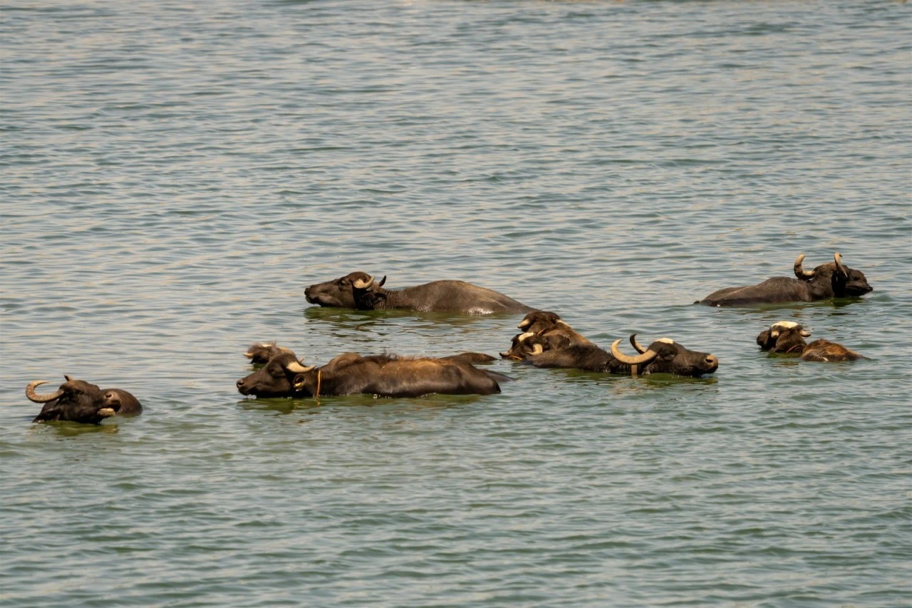 Çevredeki köylerden gelen manda ve sığırlar, sıcağın etkisini azaltmak için günün en sıcak saatlerinde gölün sığ sularına girerek serinliyor. Hayvanların göletin içinde gruplar halinde zaman geçirdiği anlar, bölgedeki doğayla iç içe manzaralar oluşturuyor.
