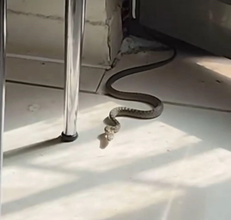 Ancak yılanın varlığını ilk fark eden, evin sevimli kedisi oldu. Balkonda otururken yılanın mutfağa doğru ilerleyişini gören kedi, defalarca miyavlayarak zıplamaya başladı. Kedinin bu sıra dışı tepkisi sayesinde ev sahipleri olası bir tehlikeyi erkenden fark etti. O anlar, olay yerine yakın bir vatandaş tarafından cep telefonu kamerasıyla kaydedildi.