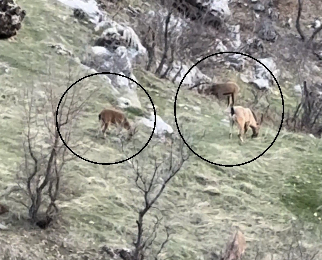 Çermik Sakaltutan mevkiinde dağ keçilerinin gruplar halinde beslendikleri görüldü. O anlar Cuma Kuş isimli vatandaş tarafından cep telefonu kamerası ile kaydedildi.