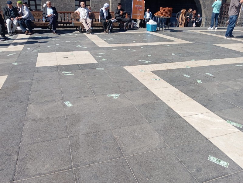 DİYARBAKIR – Diyarbakır’ın Sur ilçesinde yer alan tarihi ve manevi öneme sahip Ulu Camii önünde Cuma namazı öncesi yaşanan ilginç bir olay, hem şaşkınlık hem de tepki yarattı. Yabancı uyruklu bir turist kafilesi, henüz bilinmeyen bir sebeple ellerindeki 1 dolarlık banknotları cami avlusuna saçtı.