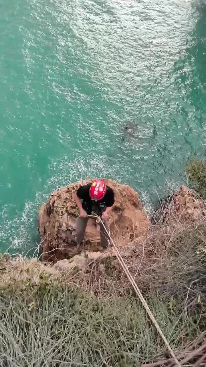 Antalya’da 30 metrelik falezlerde mahsur kalan kedi vatandaşların ihbarı ile film gibi bir operasyonla kurtarıldı.