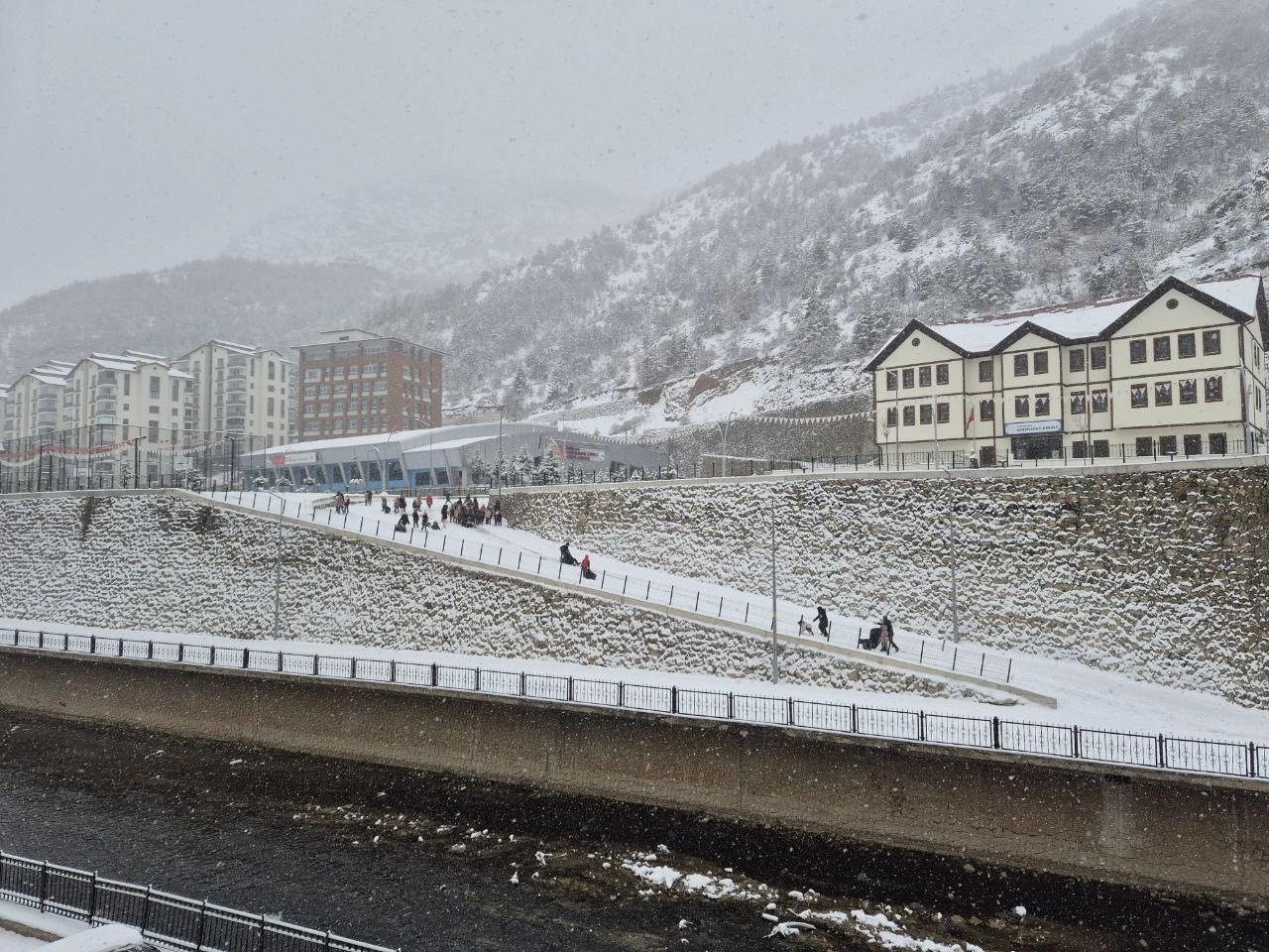Gümüşhane’de dünden beri etkili olan kar yağışı, en çok çocukları sevindirdi. Kentin dört bir yanında kayak keyfi yapan çocuklar, beyaz örtünün tadını doyasıya çıkardı.