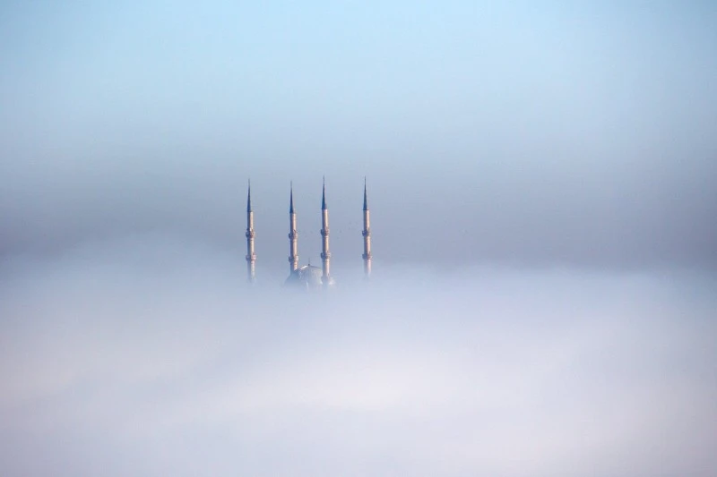 Sabahın erken saatlerinde vadiden yukarı doğru yayılan sis tabakası, Diyarbakır’ın kadim siluetini adeta bir hayal perdesinin ardına taşıyor. Kentin alt katmanlarını görünmez kılan sis, Ulu Cami, Hz. Süleyman Cami, Nasuh Paşa Cami ve Kurşunlu Cami gibi önemli yapıları bulutların arasından yükselen güçlü, sade ve etkileyici siluetlere dönüştürüyor. Kılıçoğlu’nun çektiği pek çok karede camilerin gövdeleri sisle kaybolurken, yalnızca minare uçlarının görünür olması kente mistik bir derinlik kazandırıyor.