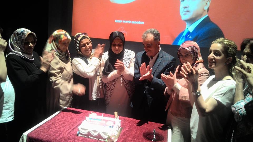 Etkinlikte, AK Partinin kuruluş yıldönümü nedeniyle pasta kesildi.