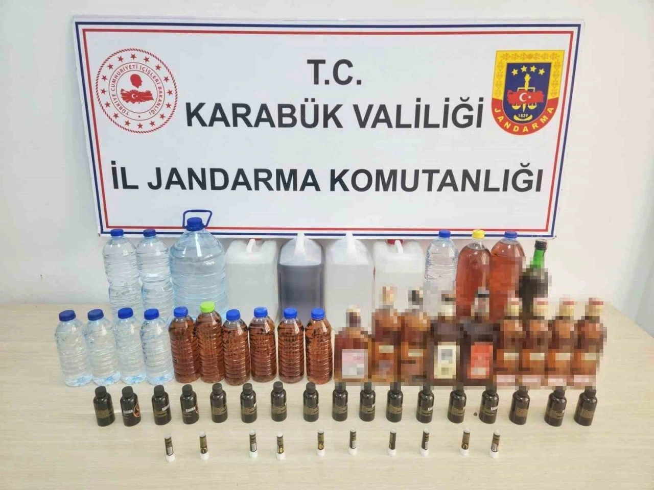 Karabük’te jandarma ekiplerinin düzenlediği operasyonda onlarca litre sahte alkol ele geçirildi.