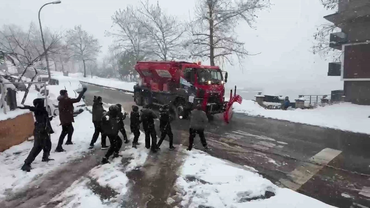 Kocaeli’de belirli aralıklarla süren kar, sürücüler için çile, çocuklar için ise eğlence oldu. Başiskele ilçesinde çocuklar, arkadaşları ile okul önüne çıkarak kar topu oynamaya başladı. Ancak bir süre sonra kar küreme aracını karşılarında gören çocuklar büyük üzüntü yaşadı. Çocuklar, "Gelme" diyerek kar topu ile araca karşılık verdi. Kocaeli Büyükşehir Belediyesi’ne ait küreme araç sürücüsü ise çocukların isteğini kırmayarak miniklerin oynayabileceği alan bıraktı.
