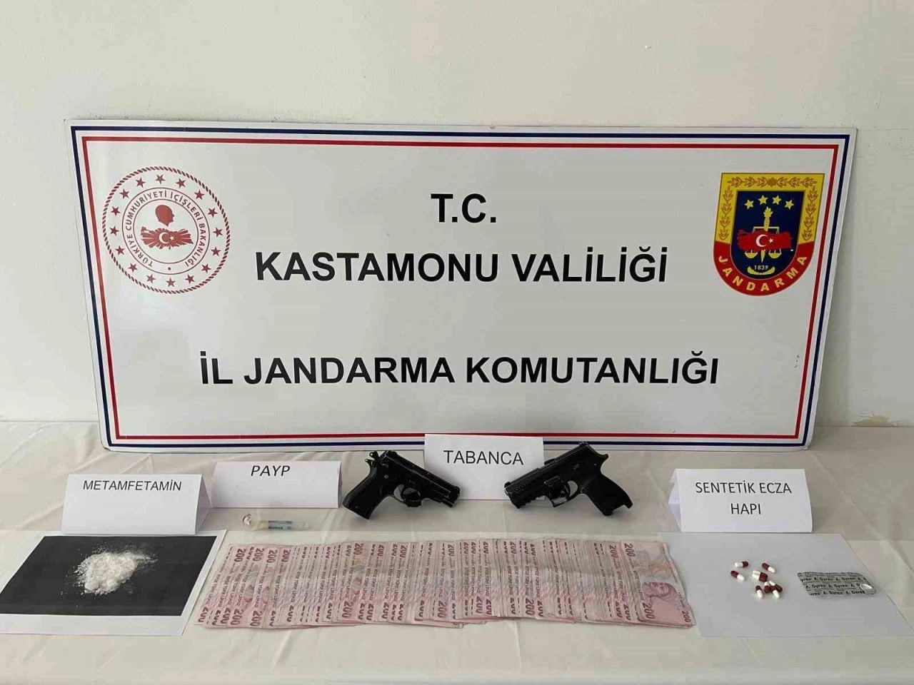 Edinilen bilgiye göre, Kastamonu İl Jandarma Komutanlığı ekiplerince, uyuşturucu madde imal ve ticareti yapan şahıslara yönelik yürütülen çalışmalar kapsamında merkez ilçede C.G. ve R.A. isimli şahısların üst ve eşyalarında arama gerçekleştirildi. Yapılan arama sonucunda metamfetamin, sentetik ecza hapı, 2 adet ruhsatsız tabanca ve suçtan elde edildiği değerlendirilen 18 bin TL nakit para ele geçirildi.