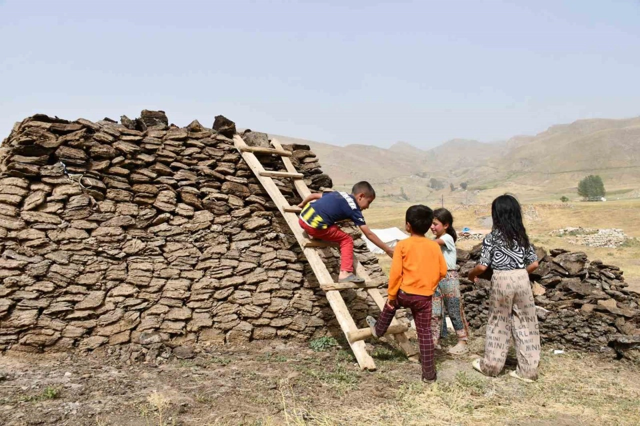 Beytüşşebap ilçesine 45 kilometre uzaklıkta bulunan Yeşilöz köyündeki 2650 rakımlı Faraşin Yaylası’na her yıl giden göçerler ve bölge halkı, kış hazırlıklarına erken başladı. Ahırlardan çıkarılan tezekler güneşte kurutulduktan sonra toplanarak istifleniyor. Çocuklar da oyuncak yerine tezeklerle hem oynayıp hem de ailelerine yardım etmeye çalışıyor. Günlerdir tezekleri istifleyen yaşları 8 ile 13 arasında değişen çocuklar, boş vakitlerinde ise bidondan yaptıkları kızakla eğleniyor.
