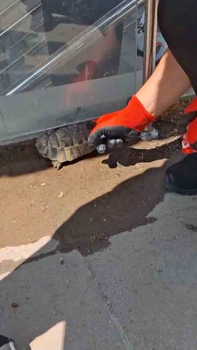 İtfaiye personeli, dikkatli müdahaleyle kaplumbağayı sıkıştığı yerden zarar vermeden çıkardı. Kurtarılan kaplumbağa, doğal yaşam alanına bırakılmak üzere koruma altına alındı. O anlar cep telefonu kamerasıyla görüntülendi.