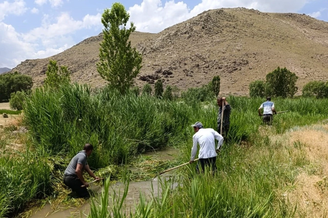 Vatandaşlar arazilerinin sulaması için imece usulü ile çalışma yapıyor.