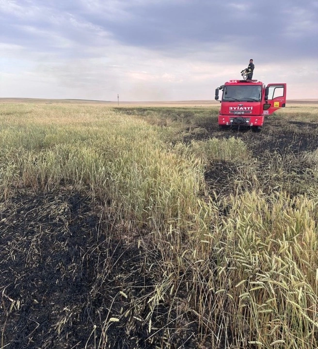 Konya’nın Kulu ilçesinde arpa ekili tarlada çıkan yangında 10 dekarlık alan zarar gördü.